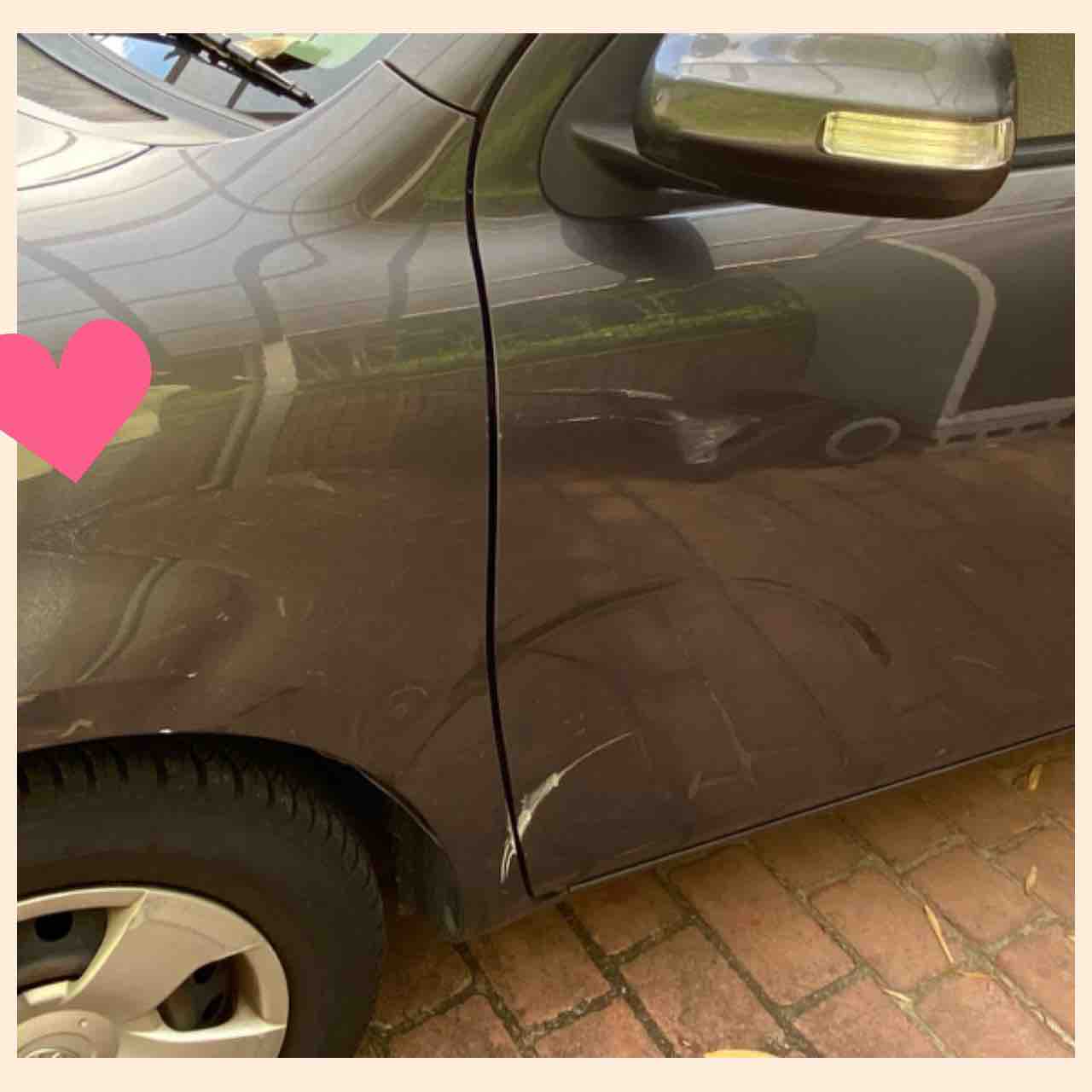 私「車の左側、タイヤの周り等に傷が付いたり