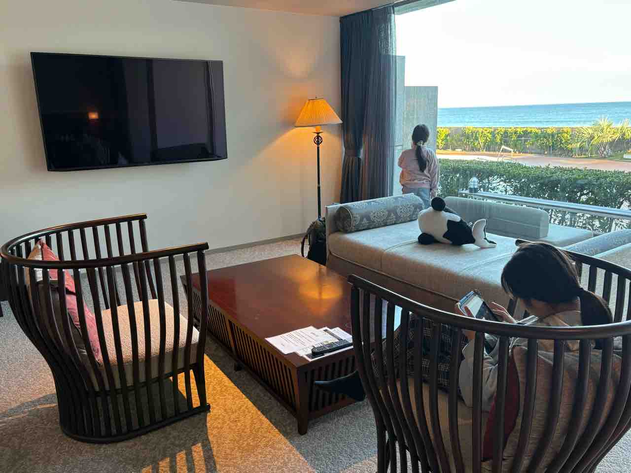 部屋の鍵を開け、中に入ったら、広い!68平米の「オーシャンフロント洋室スイート」のお部屋です。