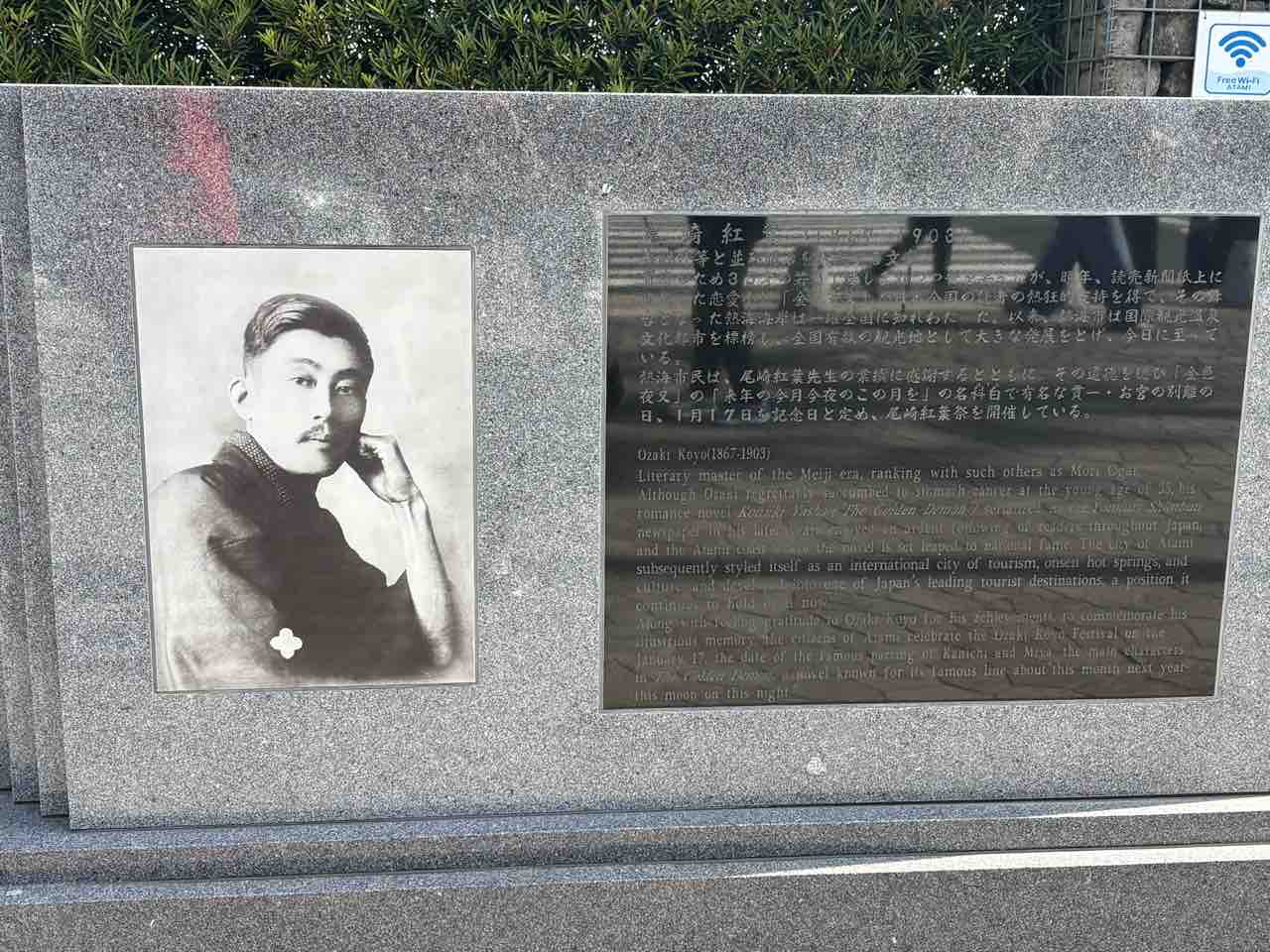 そういえば熱海は坂がたくさんあったなーと思い出しながら下っていくと、お宮の松の銅像に到着しました。