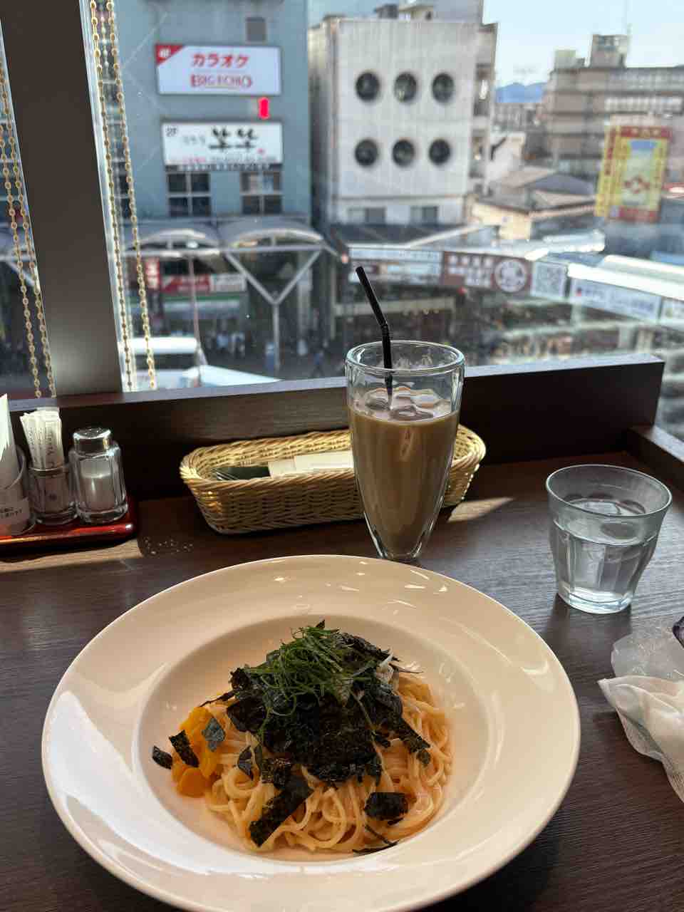 たらことシラスのパスタと、アイスカフェオレを頼みました。美味しかったです。