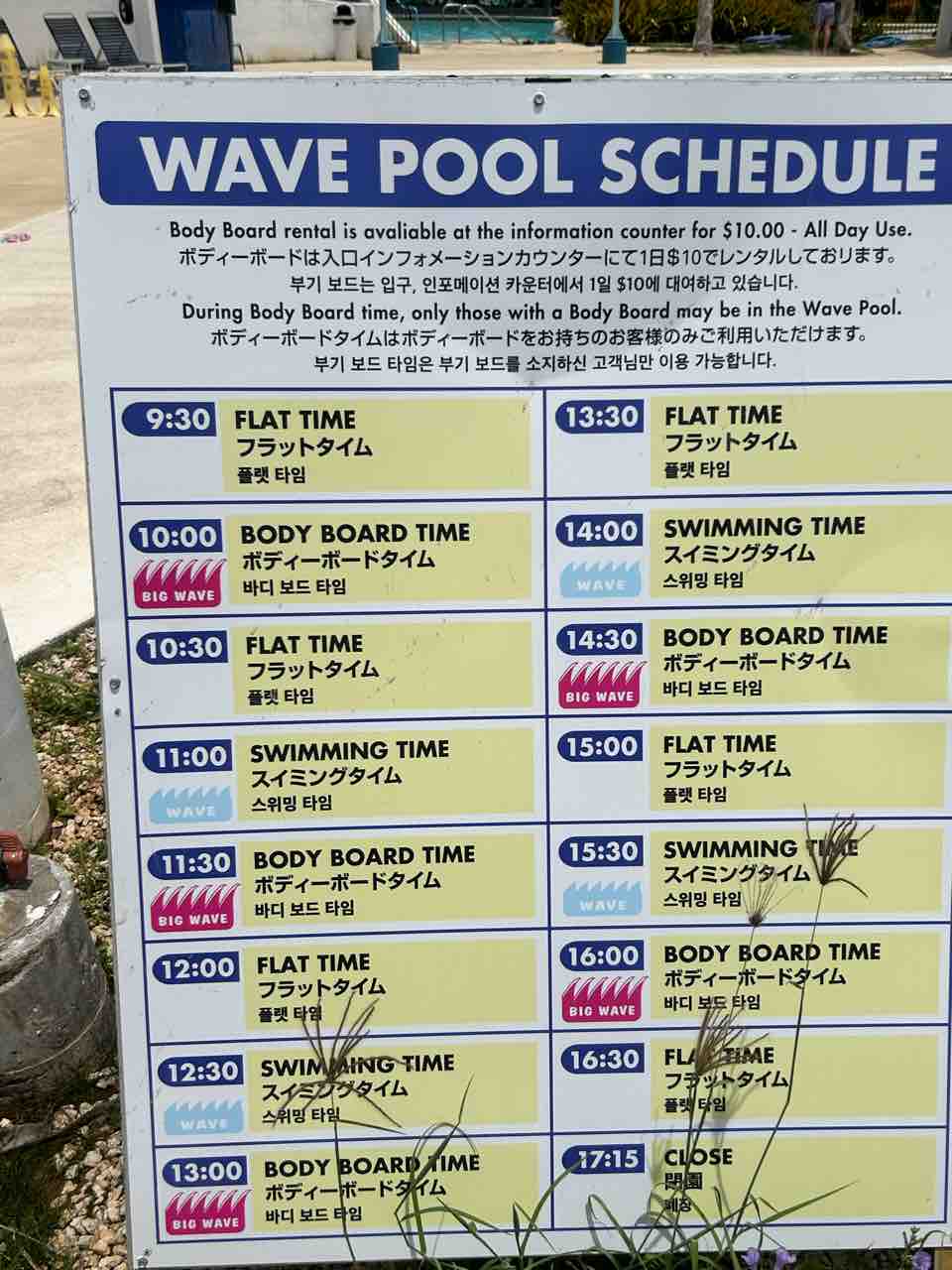 今回、流れるプールが宿泊途中まで修繕中で(公式ページで7月上旬まで工事と書いてあったのですが、実は終わってなかった・・)、お詫び?に、ボディボード貸し出しが無料になっていました。普段は1回10ドルです。