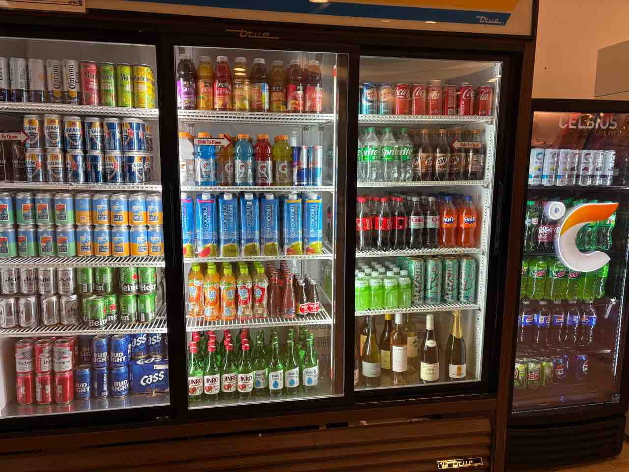 ジュース、お酒も充実しています。クーやオロナミンC等、日本の物はだいぶ高いですが。