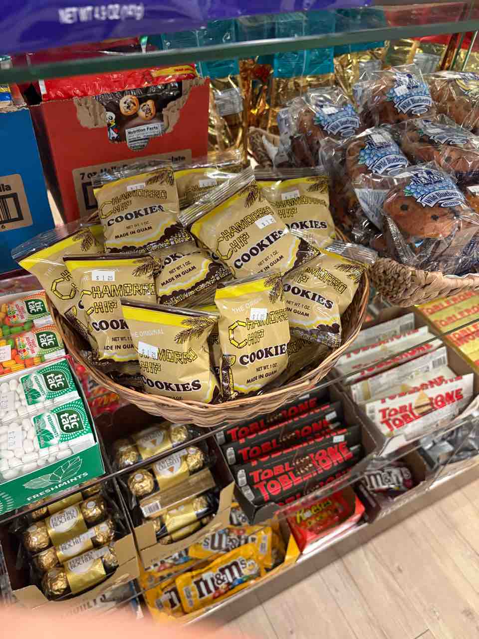 レジの近くに、チャモロチップクッキーがばら売りされていました。1ドル25セント。