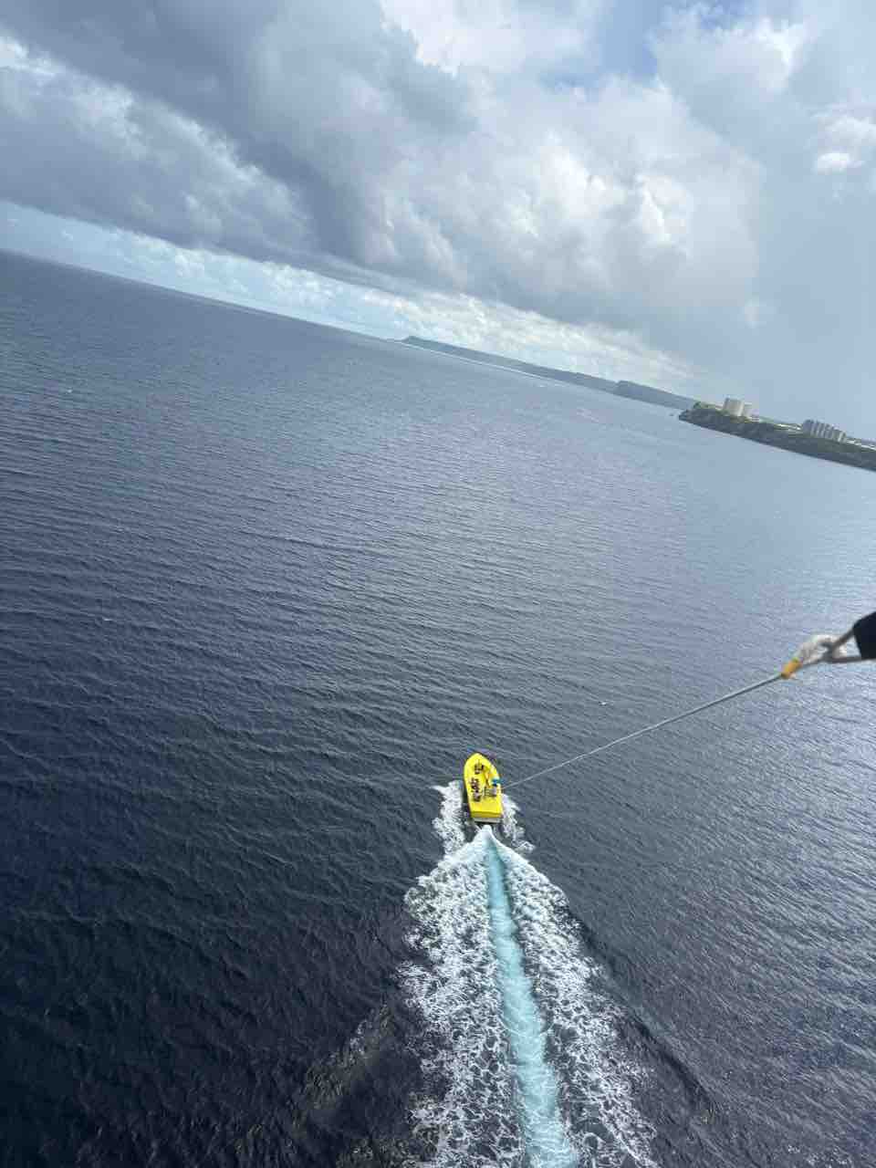 沖で一旦停止し、お兄さん2人でパラシュートを広げました。