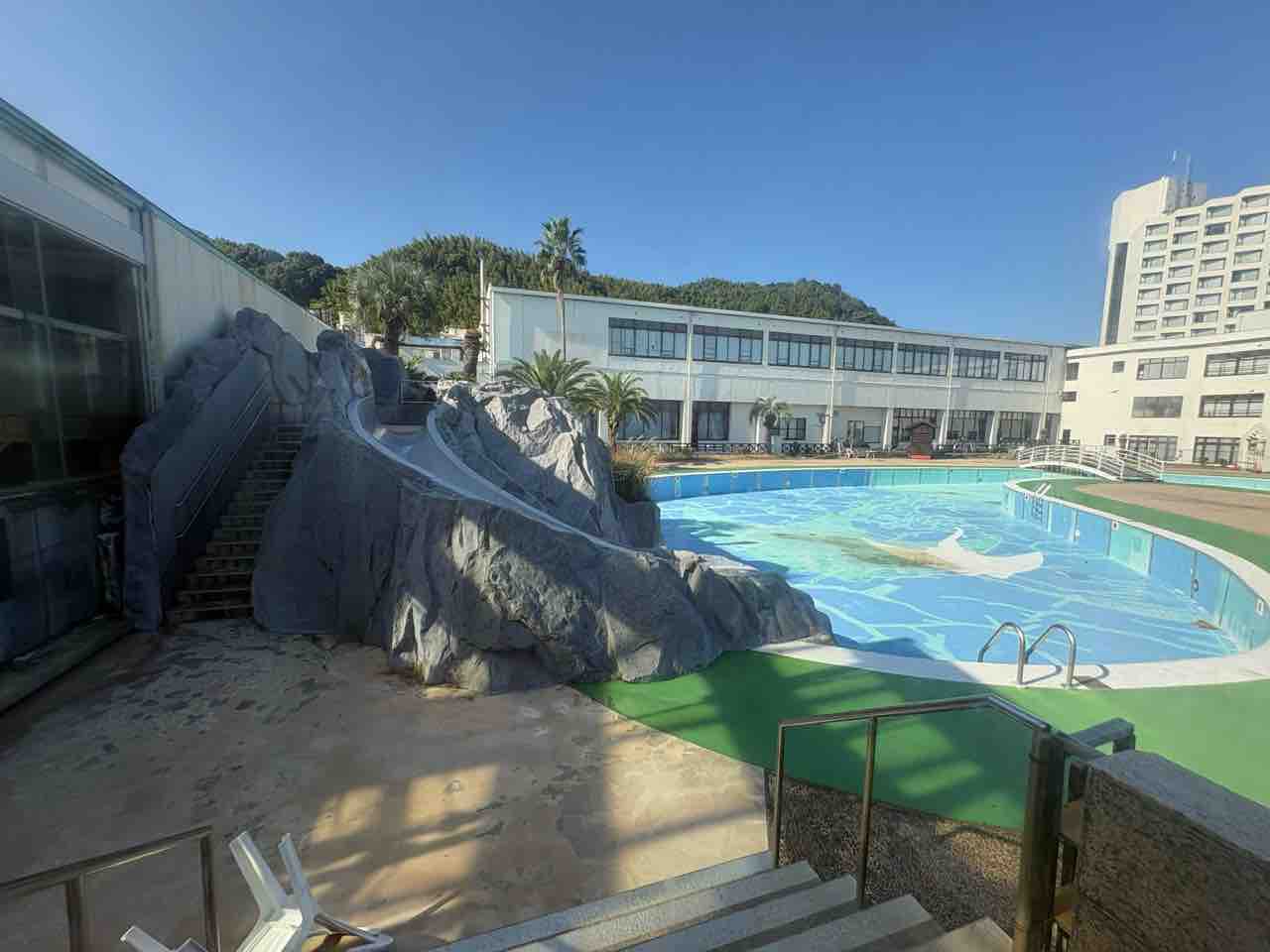 夏の間は屋外プールも利用できるようですが、この時期は閉まっています。