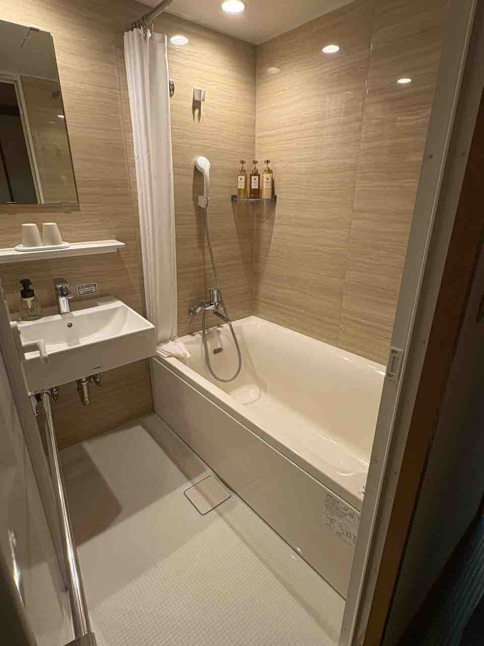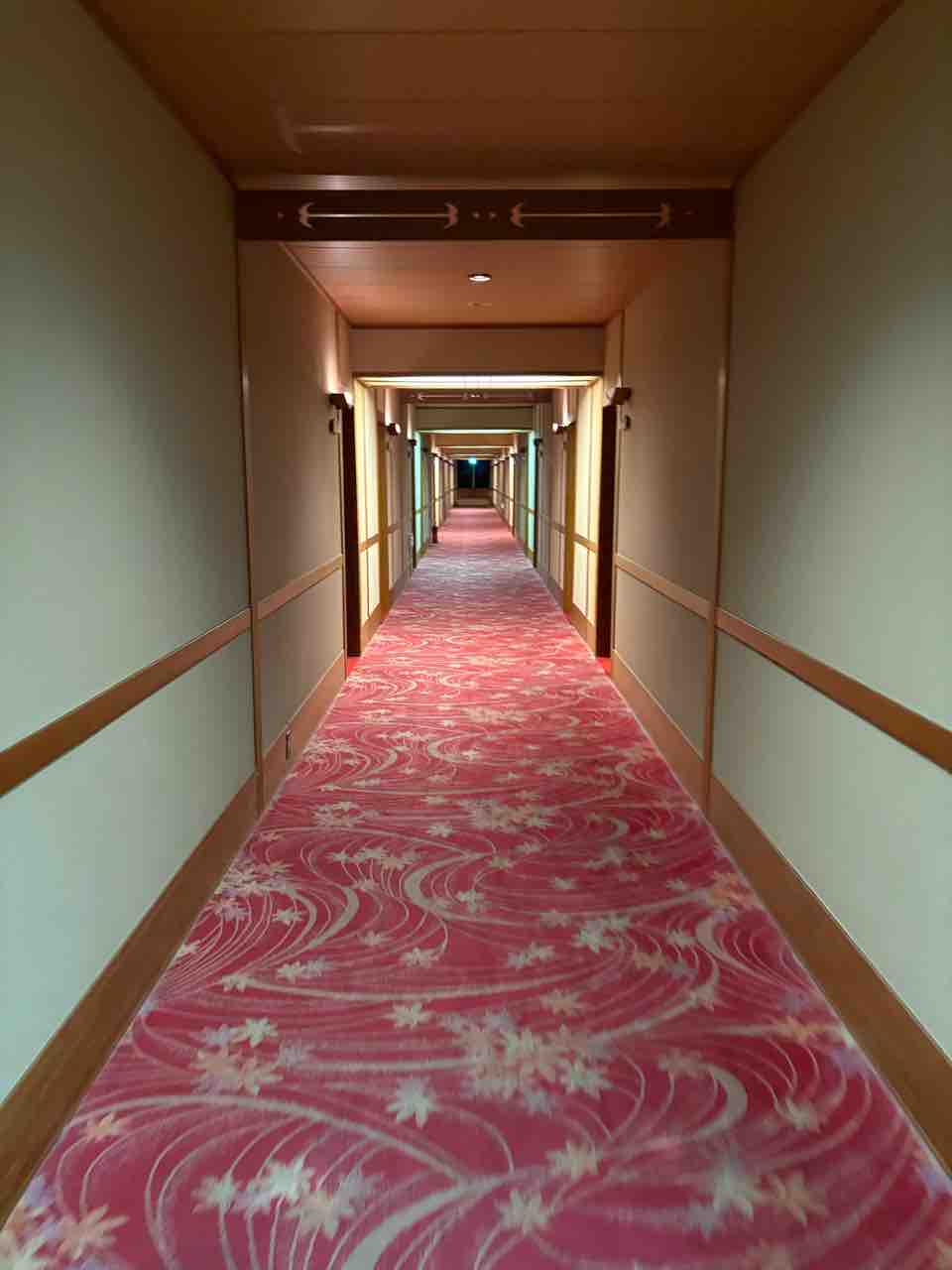 プールから大浴場までは、隣とはいえちょっと歩くので、プールの出口でざっと体をタオルで拭き、大浴場までの通路を歩いて、大浴場の更衣室で水着を脱ぎ、大浴場に入る、という流れになります。
