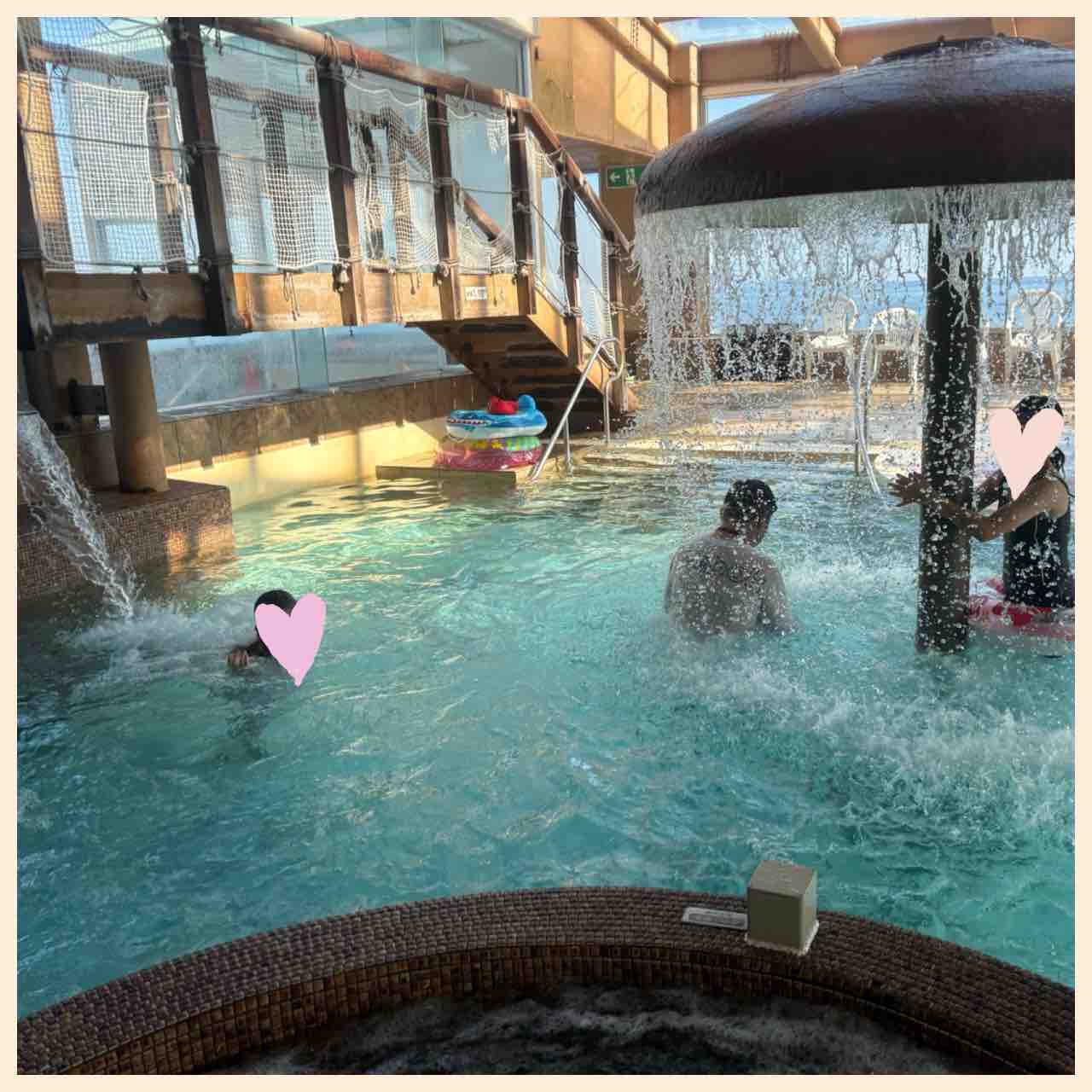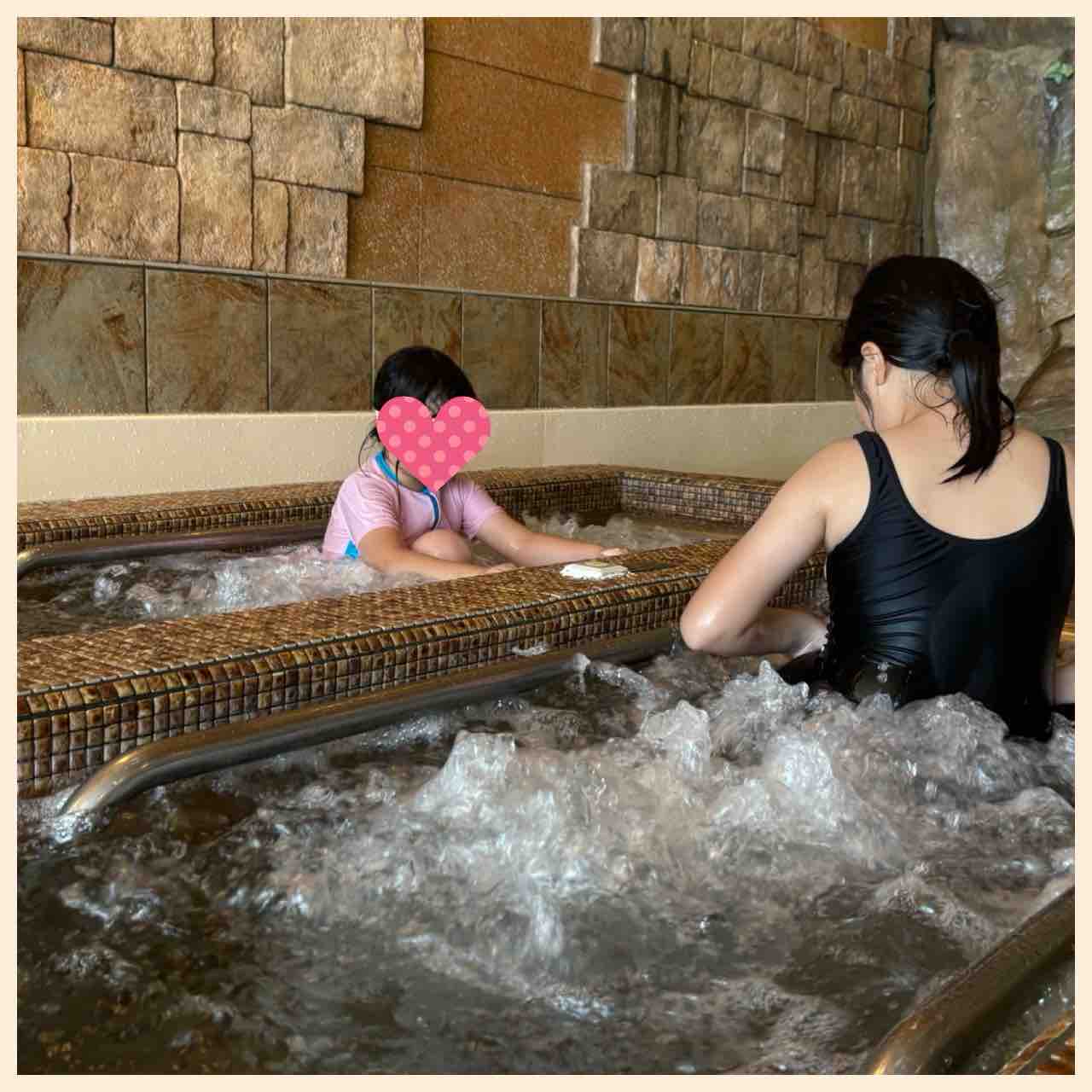 お昼が過ぎ、プールから上がって、温泉に入りました。