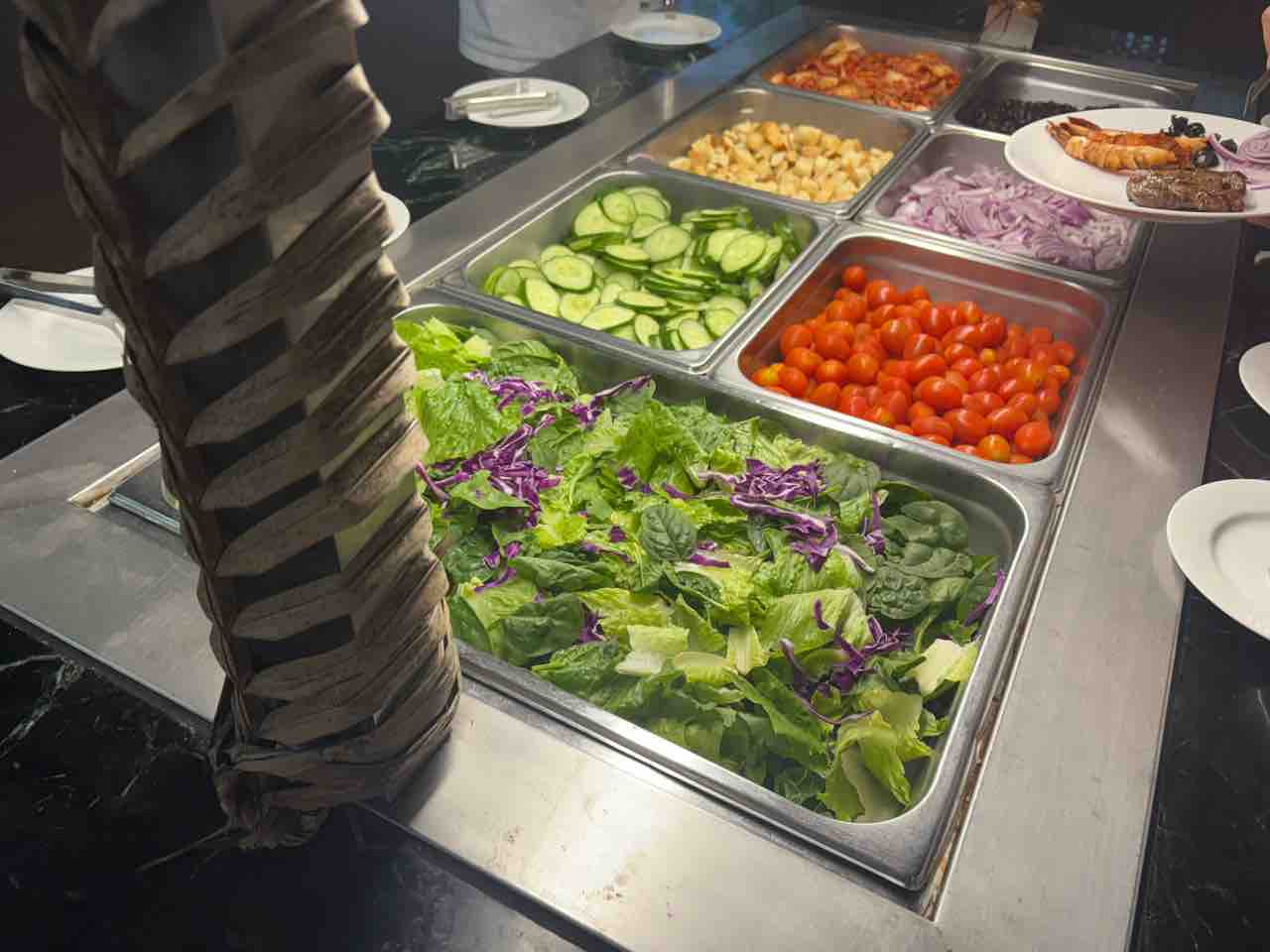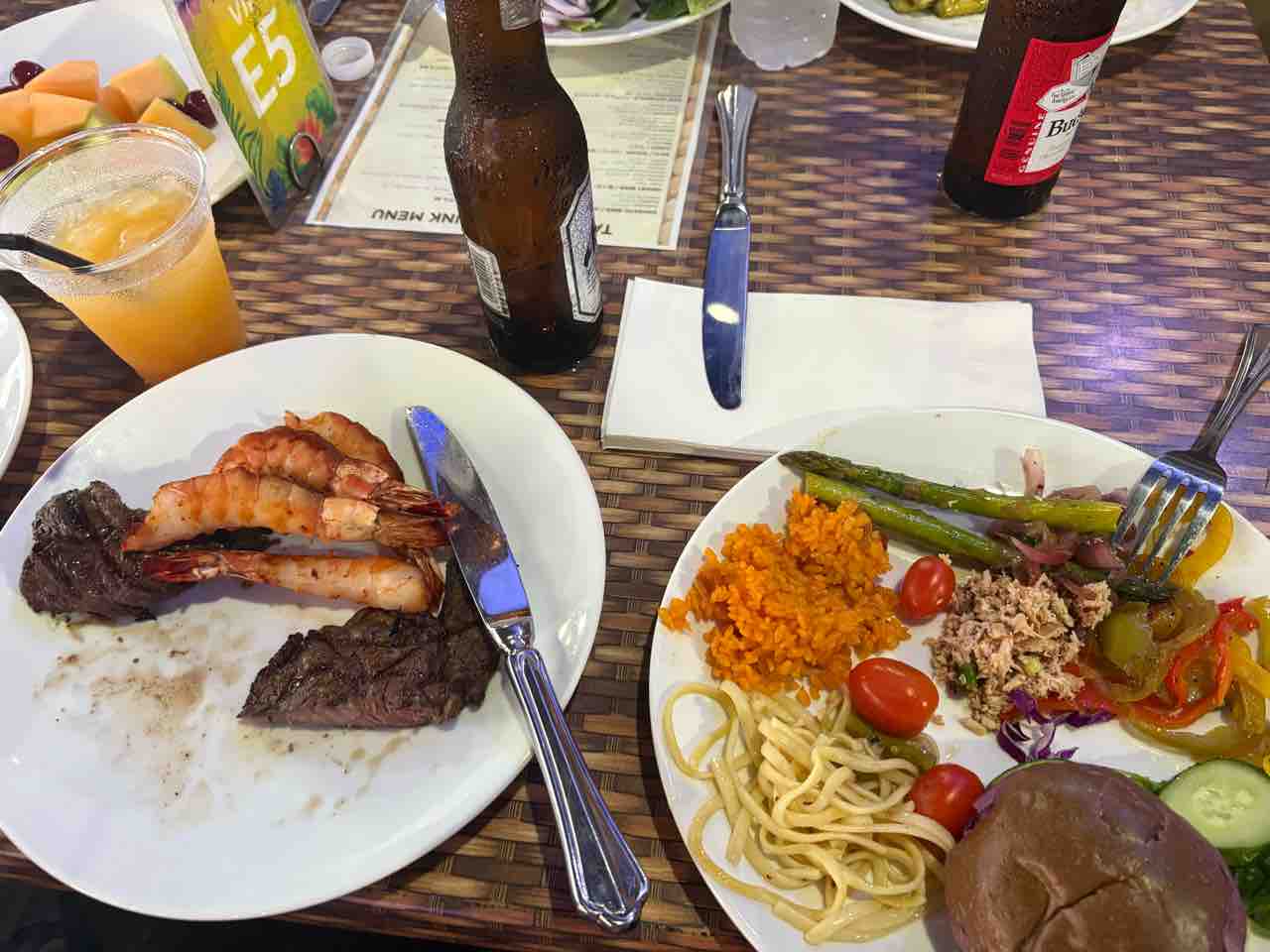 あと、ビーフステーキとエビのグリルが1回のみ提供されました(受付でもらった券と引き換えでした)。