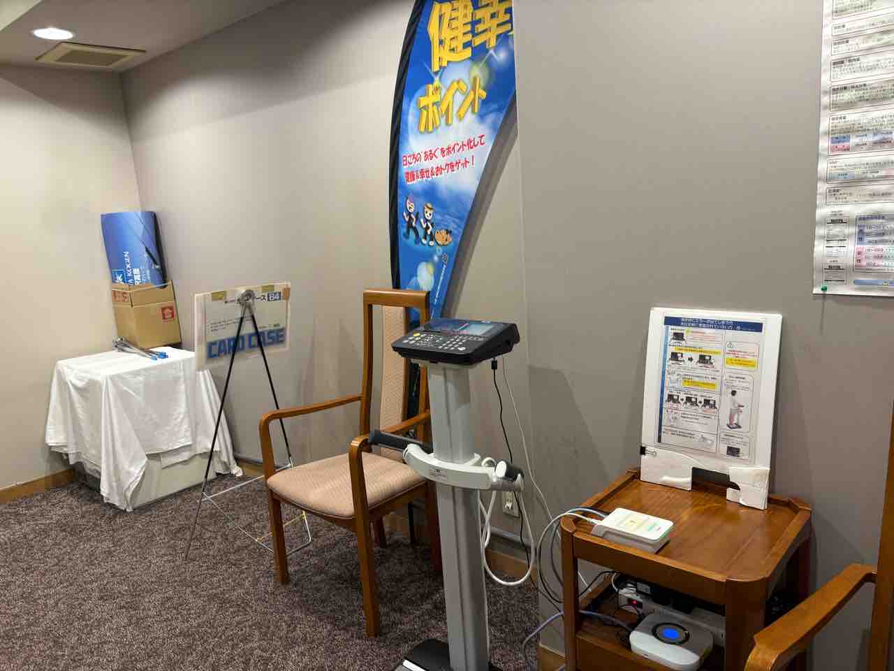 廊下の隣のスペースには、筋肉量や水分量が測れる体重計がありました。