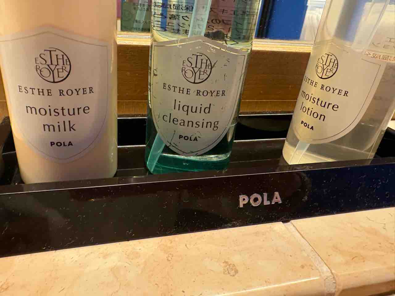 POLAのクレンジング、化粧水、保湿ミルクがありました。