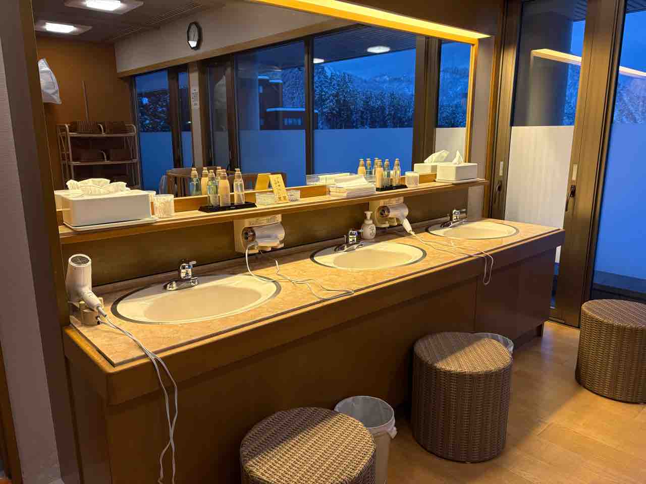 洗面台。ドライヤーはお部屋のものとは異なり、新しかったです。でも風量はいまいち。