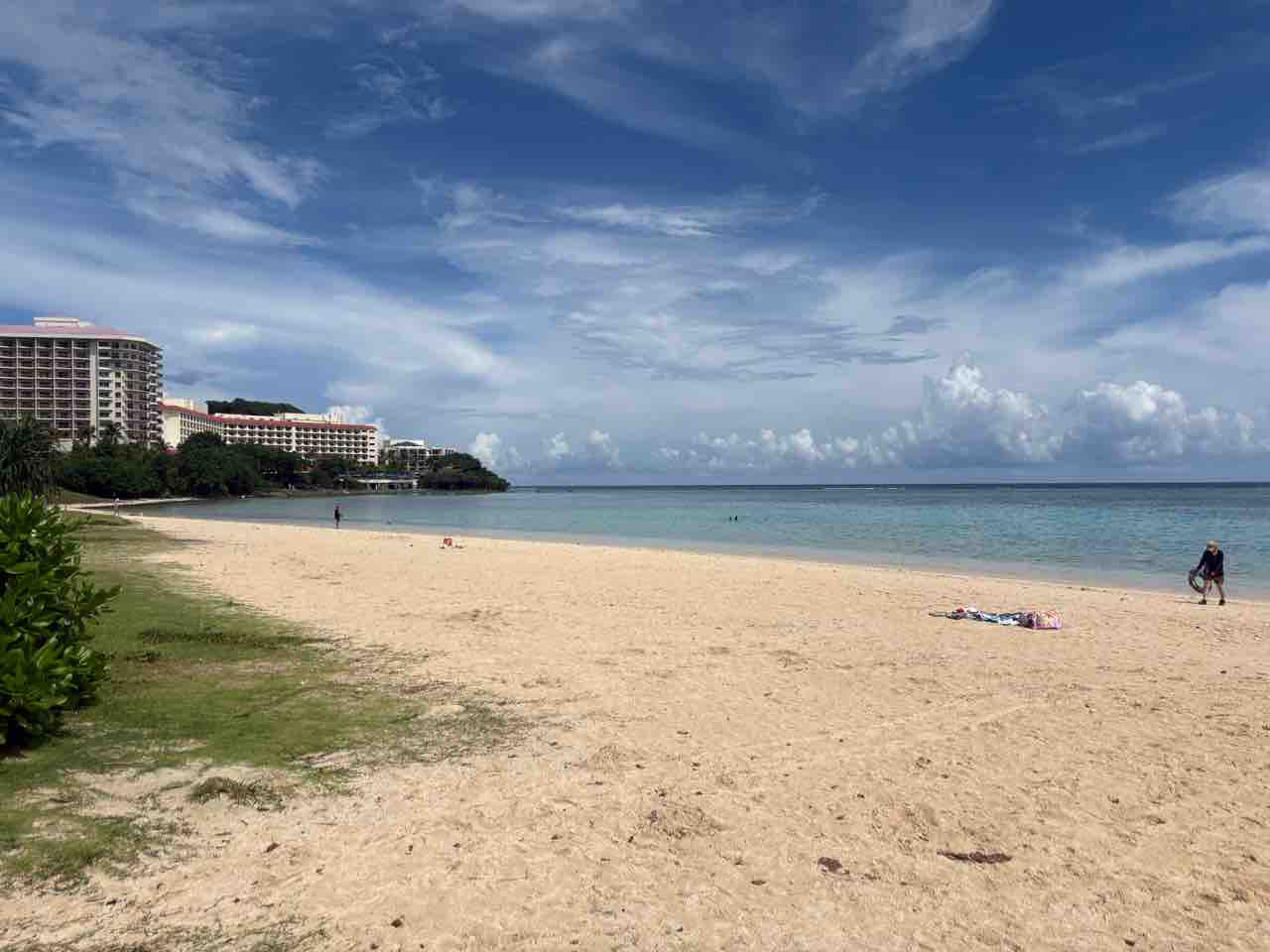 ここのビーチは、なだらかですがどんどん深くなり、波打ち際から数メートル進むと身長より深くなります。